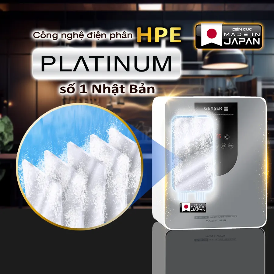 Sử dụng 5 tấm điện cực Titanium phủ Platinum của Maxell Nhật Bản.
